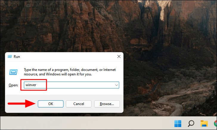 - Type "winver" and press Enter or click "OK".