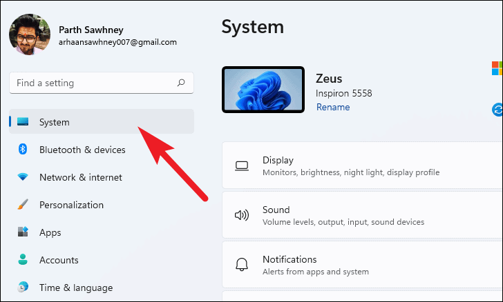 Windows + Ito open the Settings app. - Click on the System tab in the left sidebar.