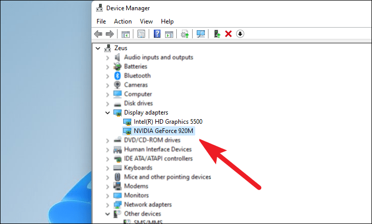 - You will see the list of graphics cards installed on your computer. To view more details, double-click on the graphics card name to open its properties window.