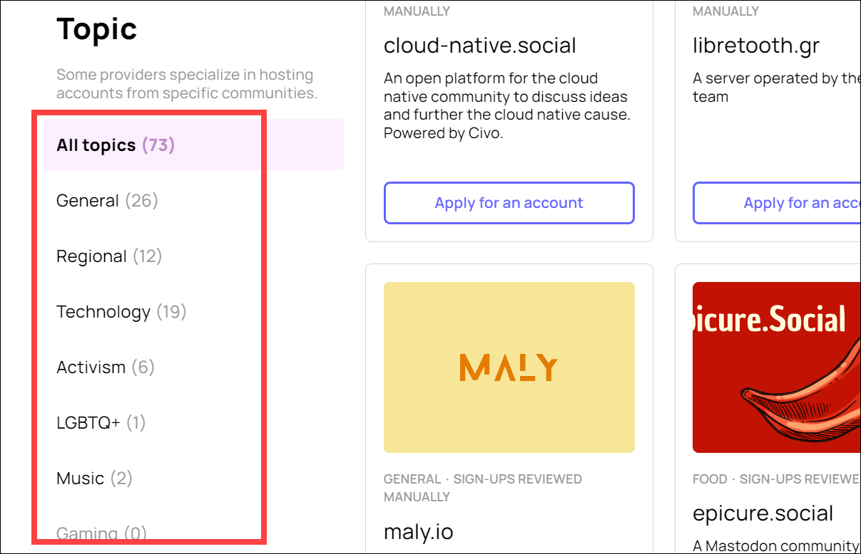 Mastodon also suggests generally going for small and medium servers. With huge servers, you’ll find that their moderation and creating a specific community are complicated.
