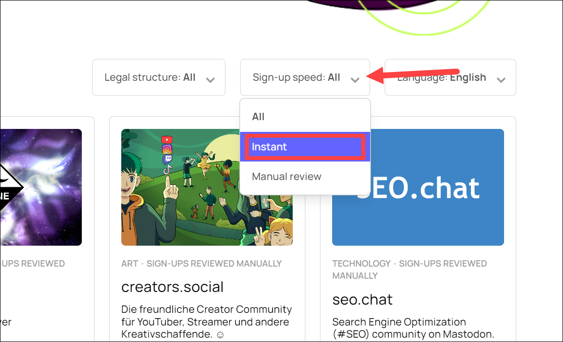 If none of the other factors matter that much to you, another factor that can determine which server to go with is the signup policy for the server. Mastodon servers are of three types: Open signup, Approval-based, and Invitation-based.