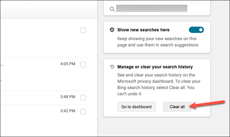 Note: If you’re signed into your Microsoft work or school account, you cannot delete your search history.