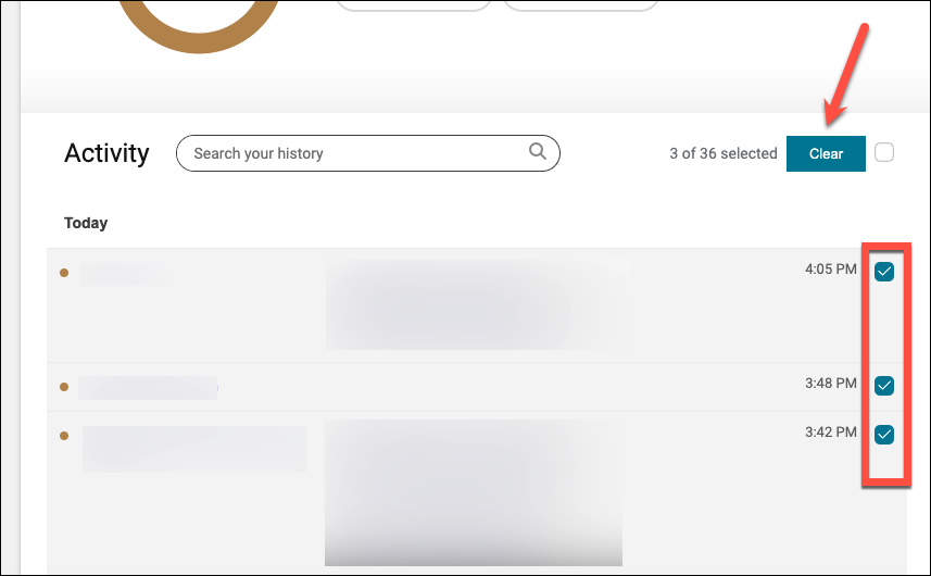 Alternatively, to clear more than one search query at a time, click the checkbox next to the ones you want to delete and click the ‘Clear’ button.