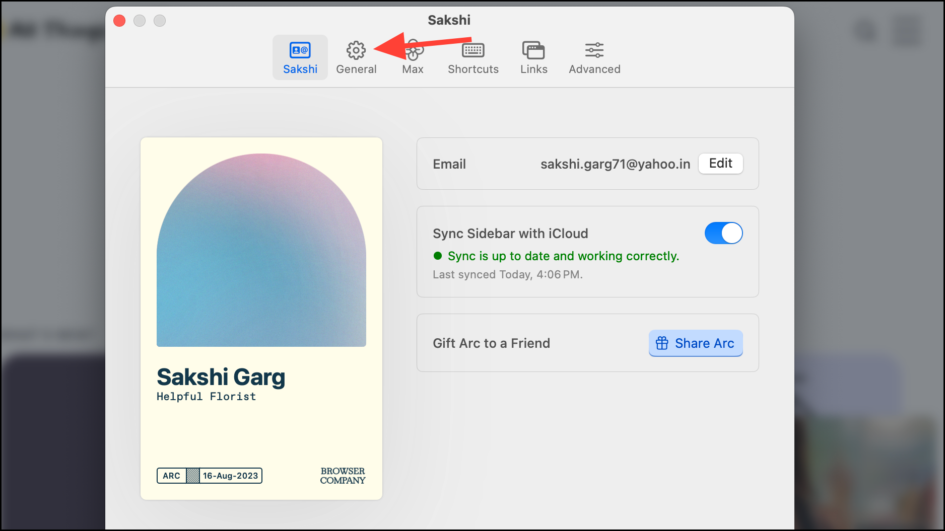 Arc>Settings. You can also use theCmd+,keyboard shortcut.
