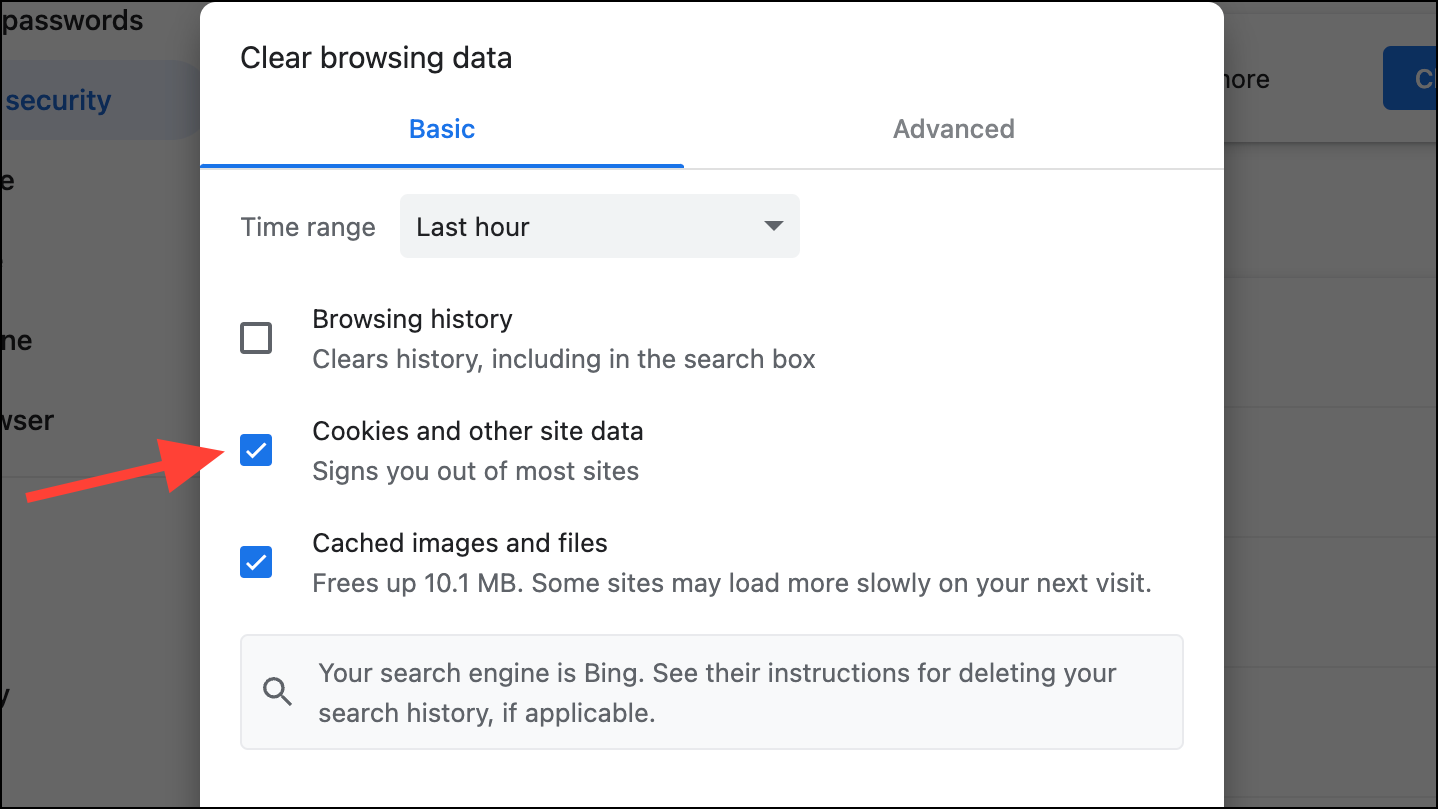 - Then, select the 'Cookies and other site data' and 'Cached images and files' options. Whether you want to clear Browsing history or not is up to you.