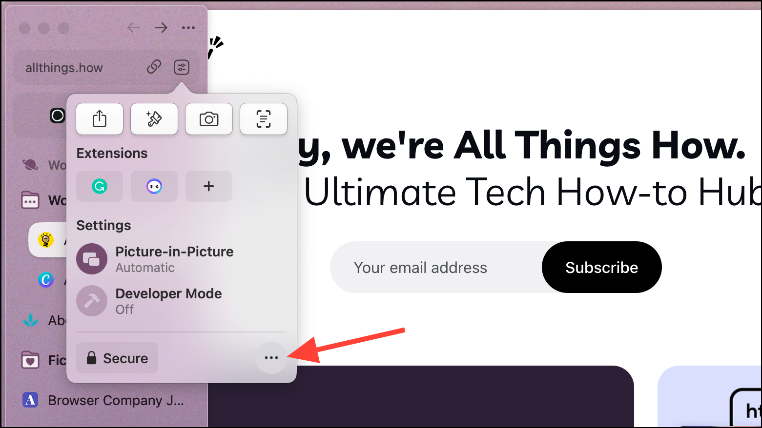 - This will open 'Privacy and security settings' for Arc in a separate tab. You can also press