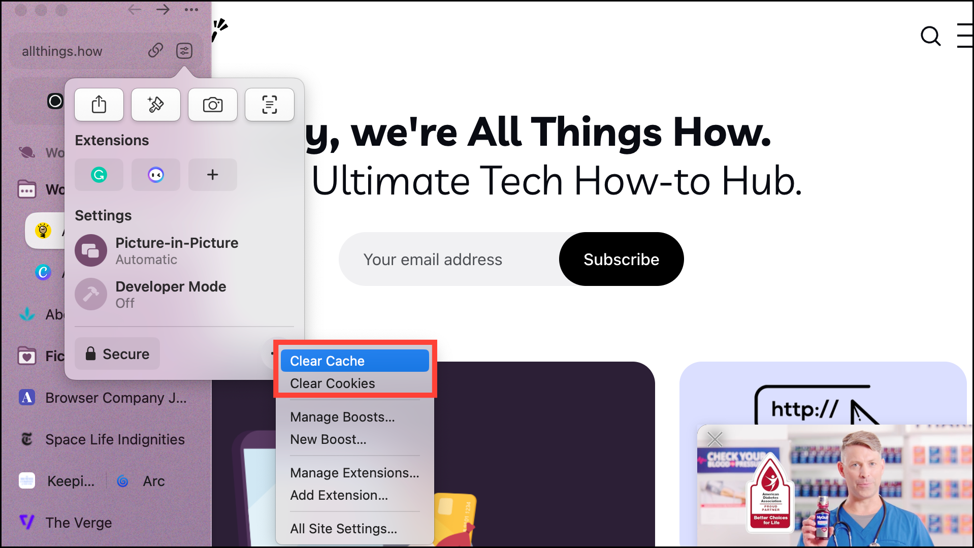 Arc Browser by the Browsing Company may do a lot of things differently, but it is a browser at the end of the day. And every browser has cache & cookies, which you'll eventually need to know how to clear.
