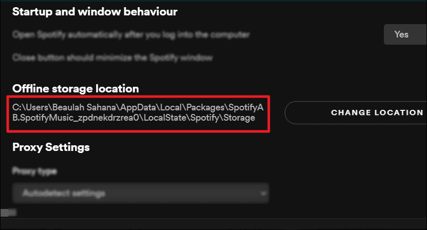 Navigate to ‘Offline storage location’. Now, manually follow the path to the location mentioned in this section to delete the Spotify cache on your desktop.