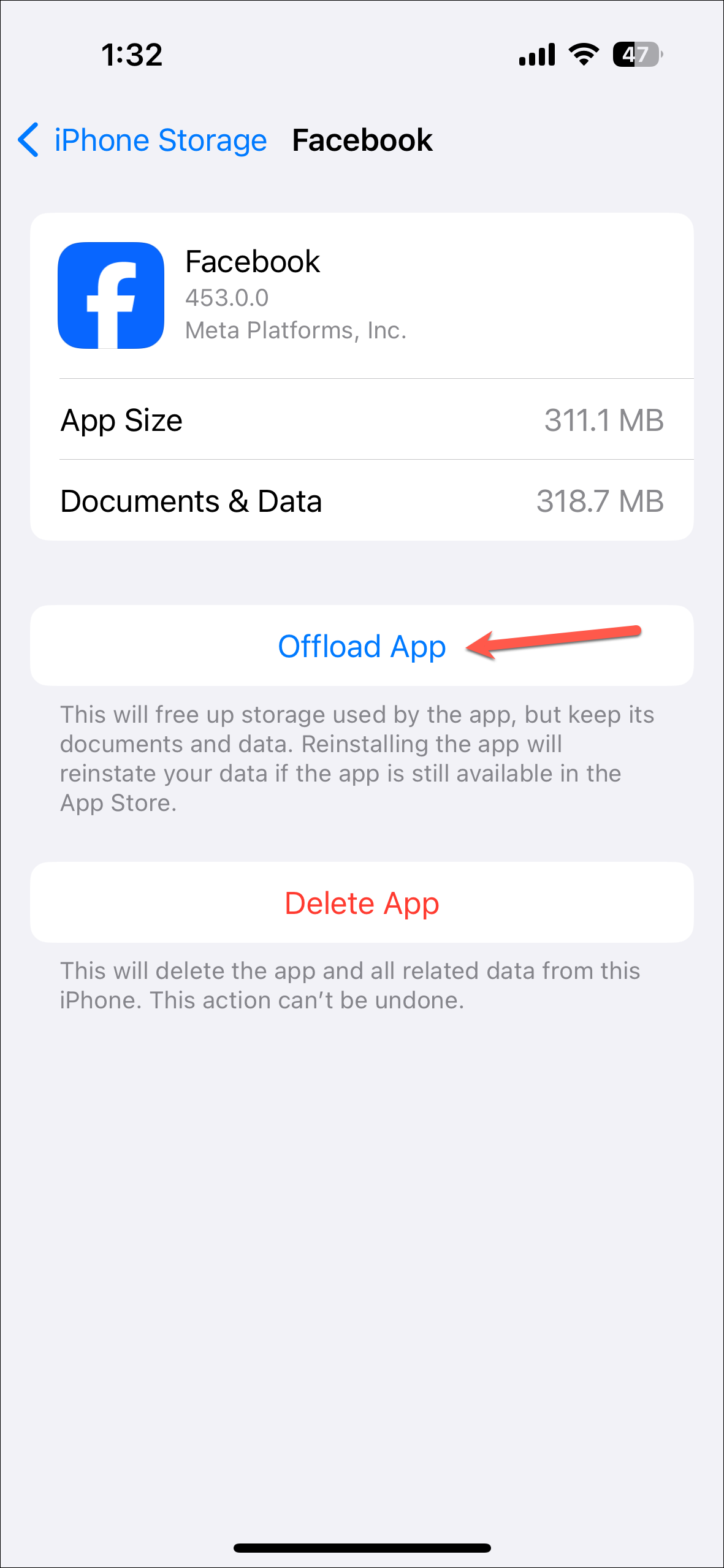 - The app will be removed from your iPhone but the documents won't. See if there's any difference in the 'Documents & Data' storage indicator for Facebook (it wasn't for me, but for users who use Facebook a lot, there can be.)