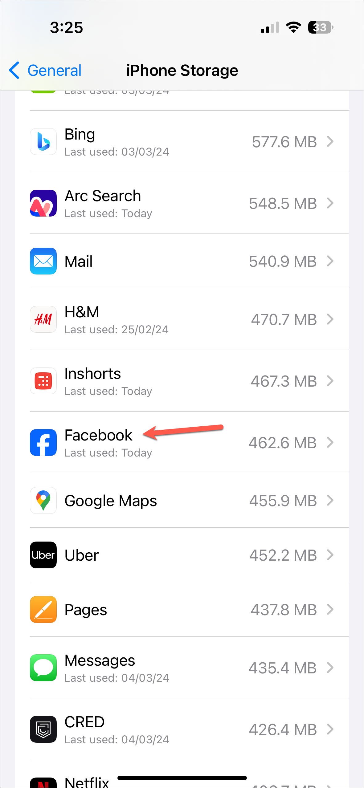 - Find or search for 'Facebook' from the list of your apps and tap on it.