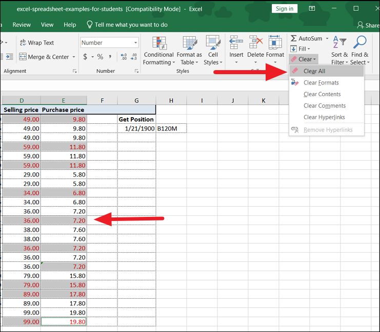 When you are working on a large spreadsheet with too many cells formatted, clearing them all separately would consume so much time. So, in that case, you can remove all the cell formatting from all the cells or the entire spreadsheet using the Clear feature.