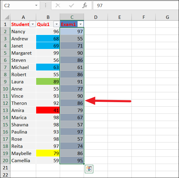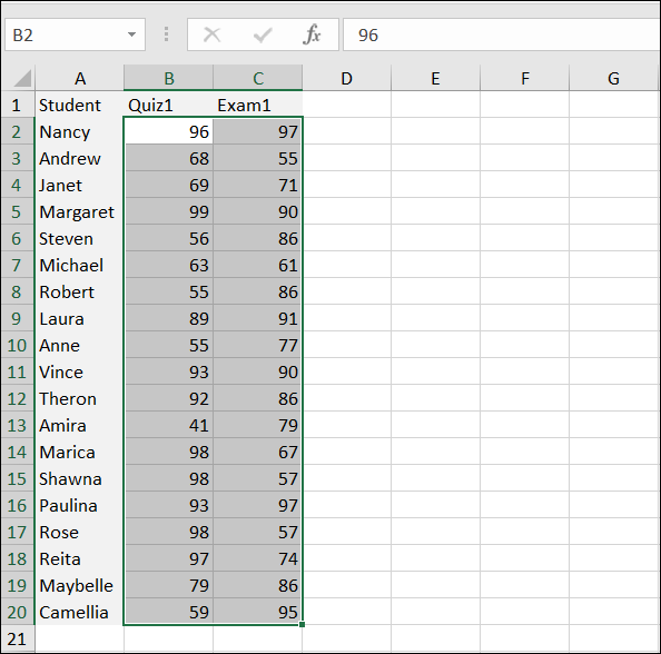 To remove table formatting from a range of cells, first, select the range from which you want to remove the formatting.