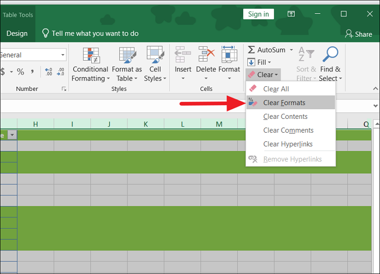 Now, click the ‘Clear’ button and select ‘Clear Formats’ in the Home tab.