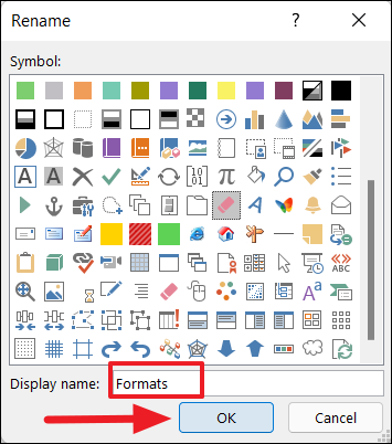 Then, enter a name for the group in the ‘Display name:’ field, choose Symbol if you want, and click ‘OK’.