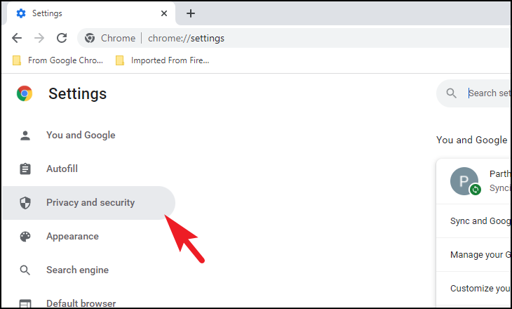 Step 3: In the Settings tab, select Privacy and security from the left sidebar.