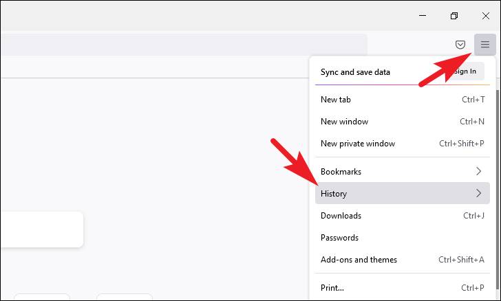 Step 2: Click on the hamburger menu (three horizontal lines) in the top-right corner and select History.