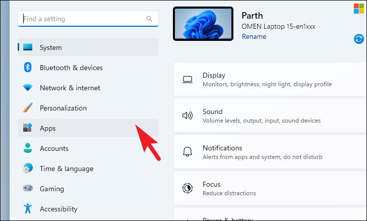 Step 1: Open the Settings app on your Windows 11 PC. To do this, click on the Start menu and select the Settings icon from the Pinned apps section, or press Windows+I on your keyboard.