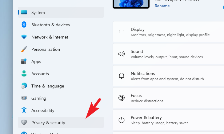 Step 2: Click on the Privacy & security tab on the left sidebar.