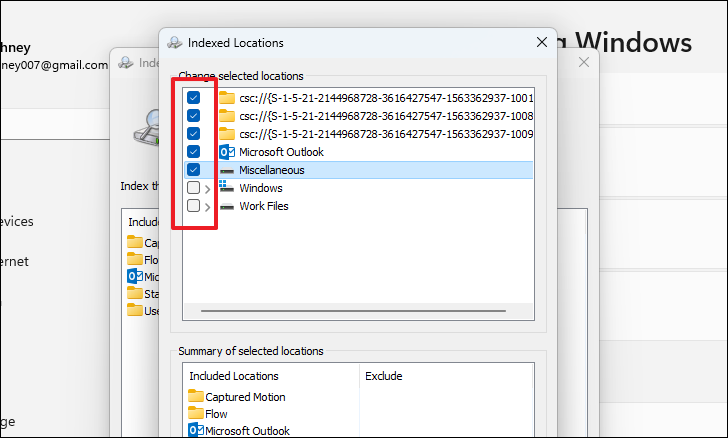 Step 7: In the list of locations, uncheck the boxes next to folders you don't want to be indexed. Be cautious, as removing locations from indexing means they won't show up in search results.
