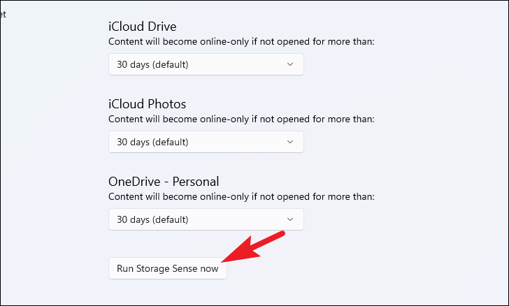 Step 8: Once you have configured the settings, you can manually initiate Storage Sense by clicking on Run Storage Sense now at the bottom of the page. This will immediately free up space based on your settings.