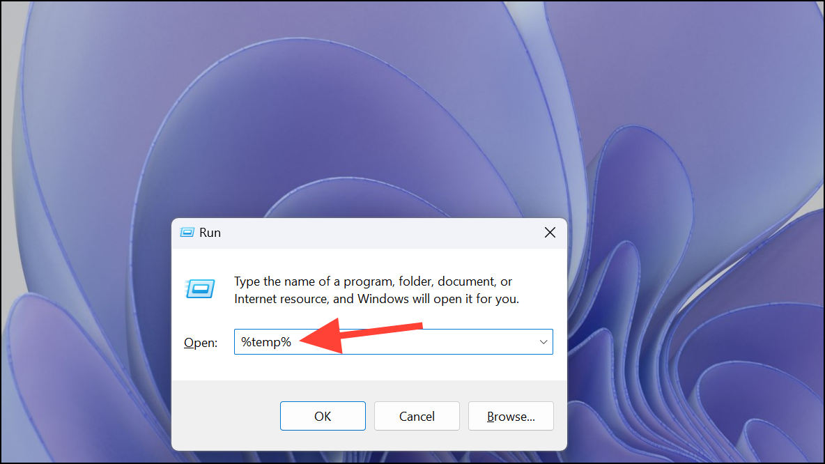 Step 2: In the Run dialog box, type %temp% and press the Enter key.