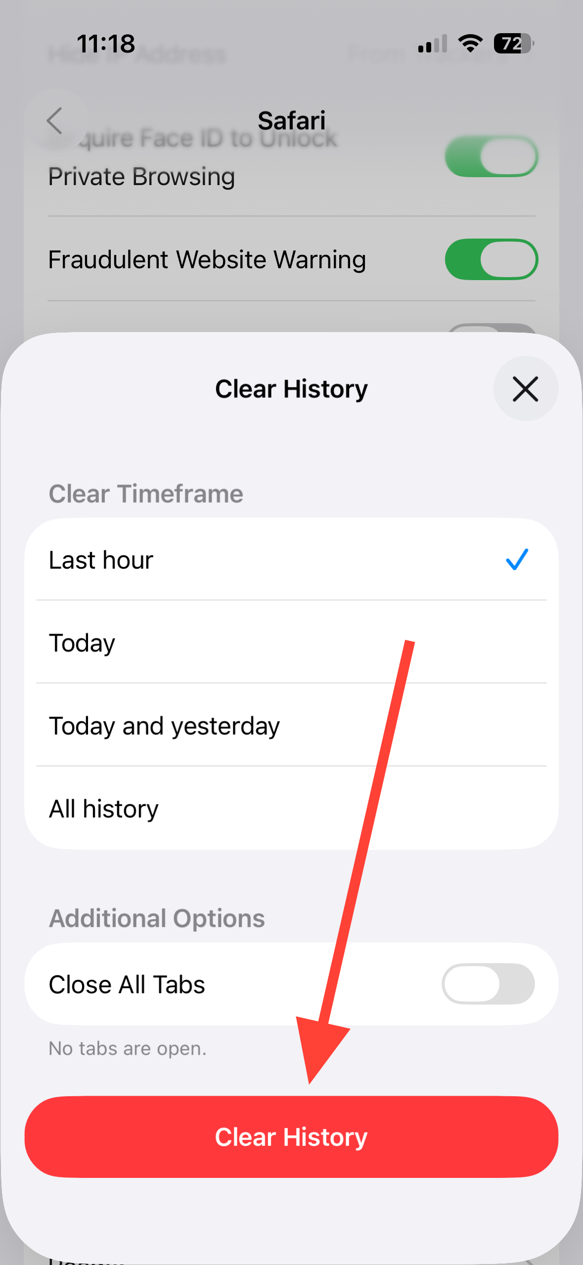 Step 5: Tap Clear History to confirm.