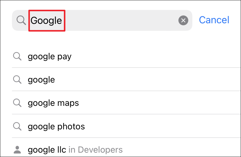 Next, type ‘Google’ and tap on the on-screen ‘Search’ button to proceed.
