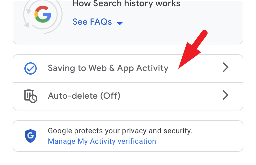 After that, tap on the ‘Saving to Web & App Activity’ option to proceed.