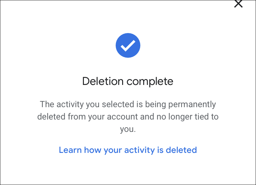 Once the deletion is complete, you will receive a message on the screen stating so.