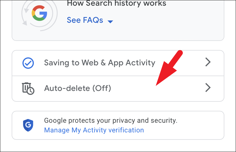 In case you do not wish to manually delete your Google search history, you can also select the ‘Auto-delete’ feature.