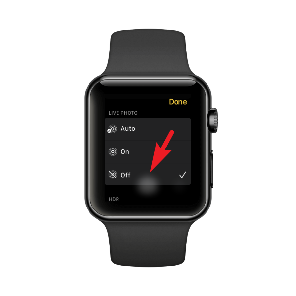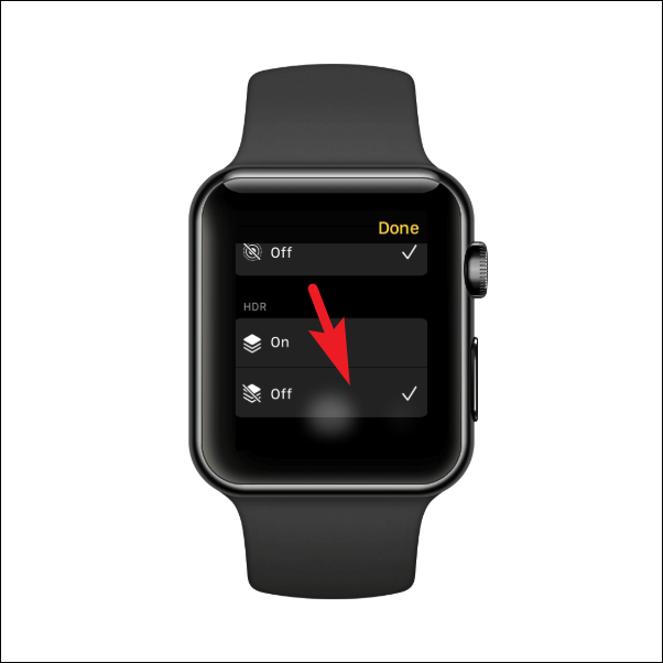 You can also toggle the HDR settings for photos from your Apple Watch. Head to the ‘HDR’ section on the Settings screen and then tap on the ‘On’ option to enable HDR photos. In case you wish to turn off HDR for photos, tap on the ‘Off’ option.