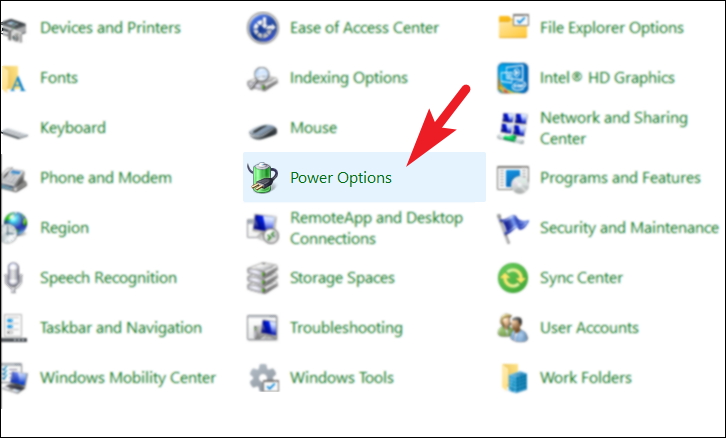 Step 2: In the Control Panel, locate and select Power Options from the list of settings.