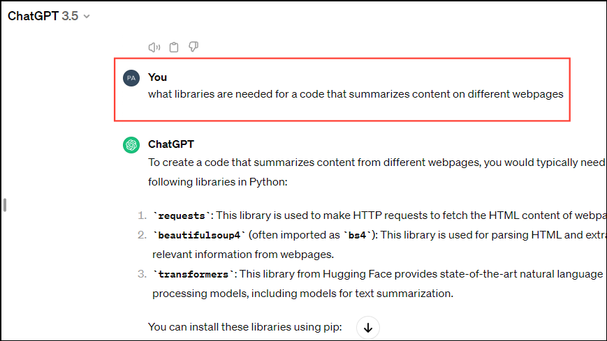 - When you press the 'Enter' key, ChatGPT will not only let you know about the libraries you need but also explain how you can install them.