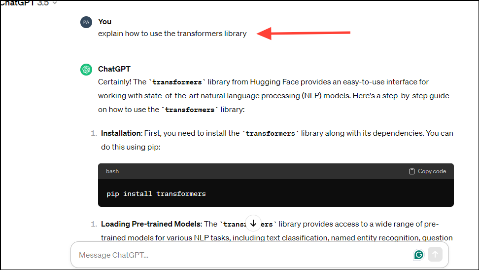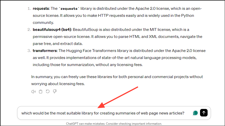 - If you want, you can even ask ChatGPT how to use a library, if you're unfamiliar with it. Type in