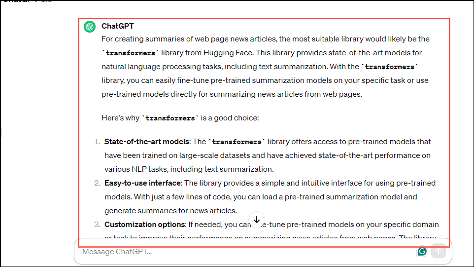 - In the same manner, you can ask ChatGPT for information on different coding libraries, the differences between them, and which one would be best for your coding needs.