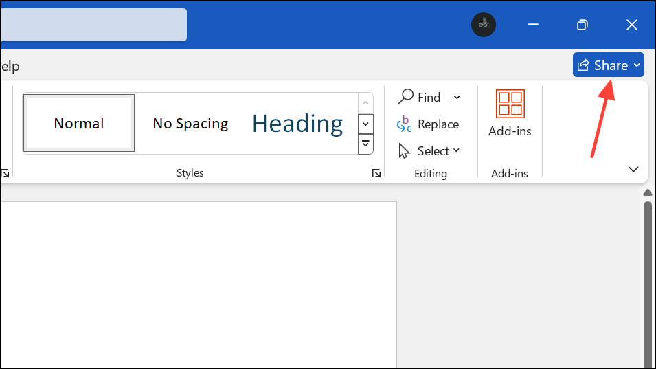 Step 2: Share the document. Click the Share button in the upper-right corner of the Word window. If the file is not yet in OneDrive or SharePoint, Word will prompt you to upload it.