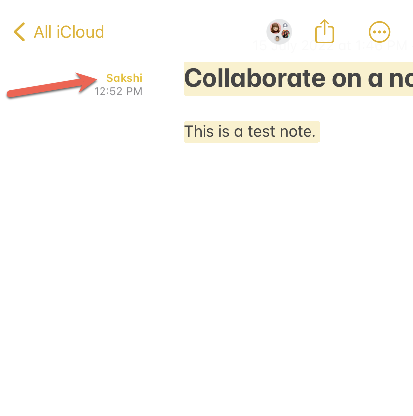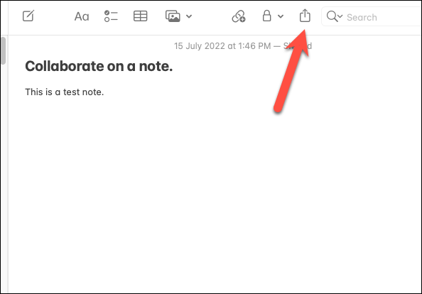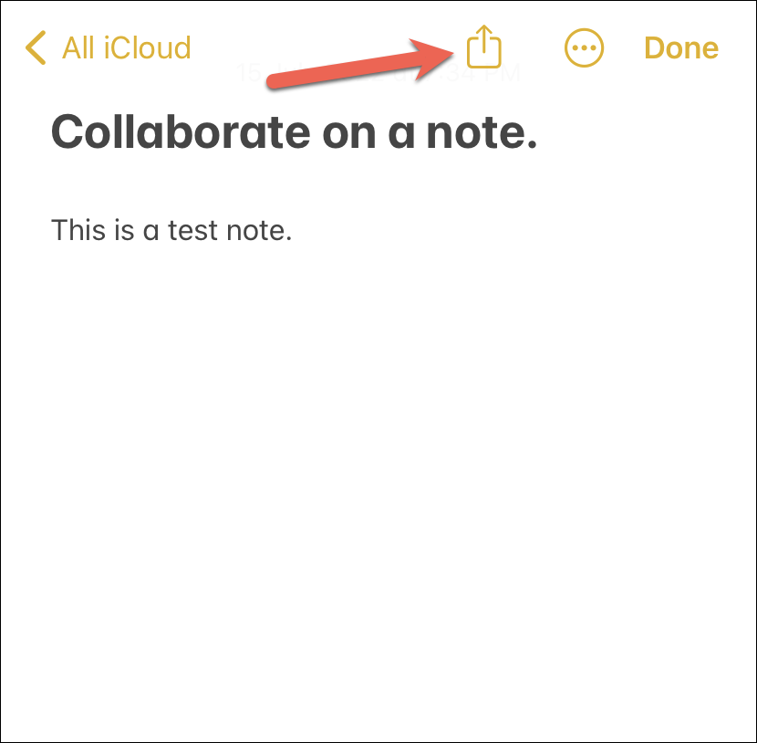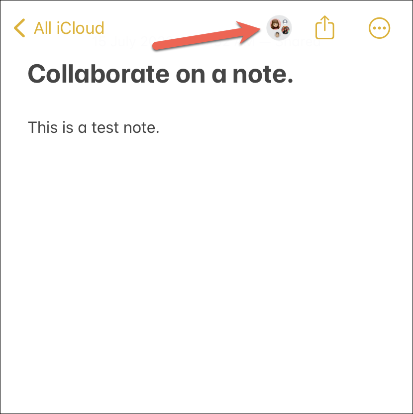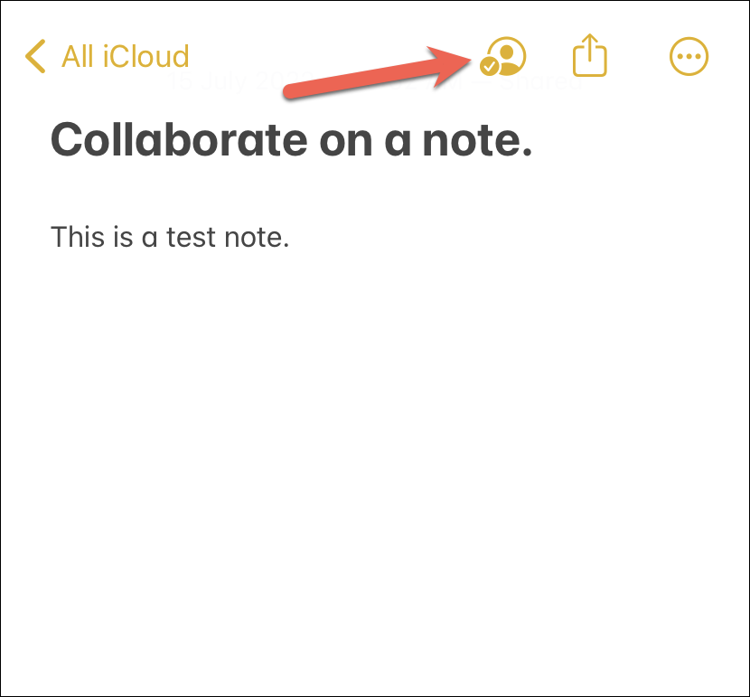 Open the note that you want to collaborate on and tap the ‘Share’ button from the toolbar at the top.