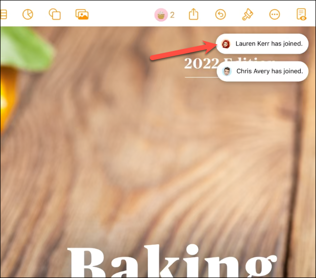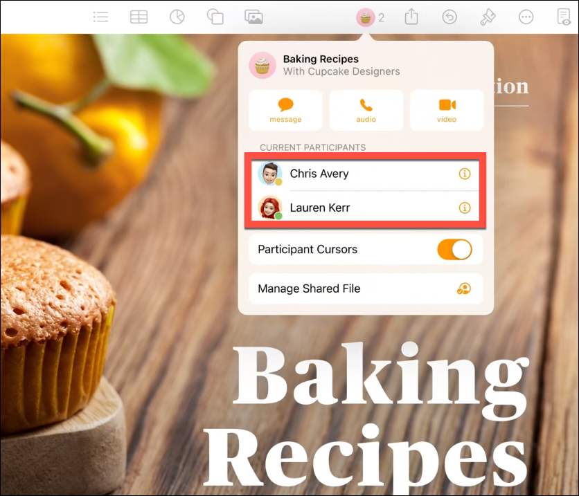 In some apps, like Pages, the people who are currently participating in the document will also appear in the pop-over.