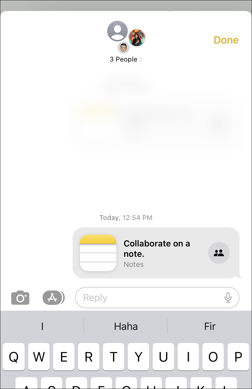 There’s no wait for others to have to accept the invite. As soon as you tap the ‘Send’ button, the collaboration will kickoff. If the group chat or the contact has a photo in your Messages, that photo will appear automatically in the toolbar next to the Share button to indicate collaboration.