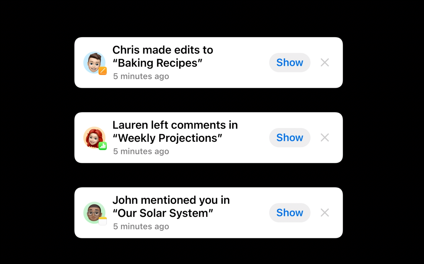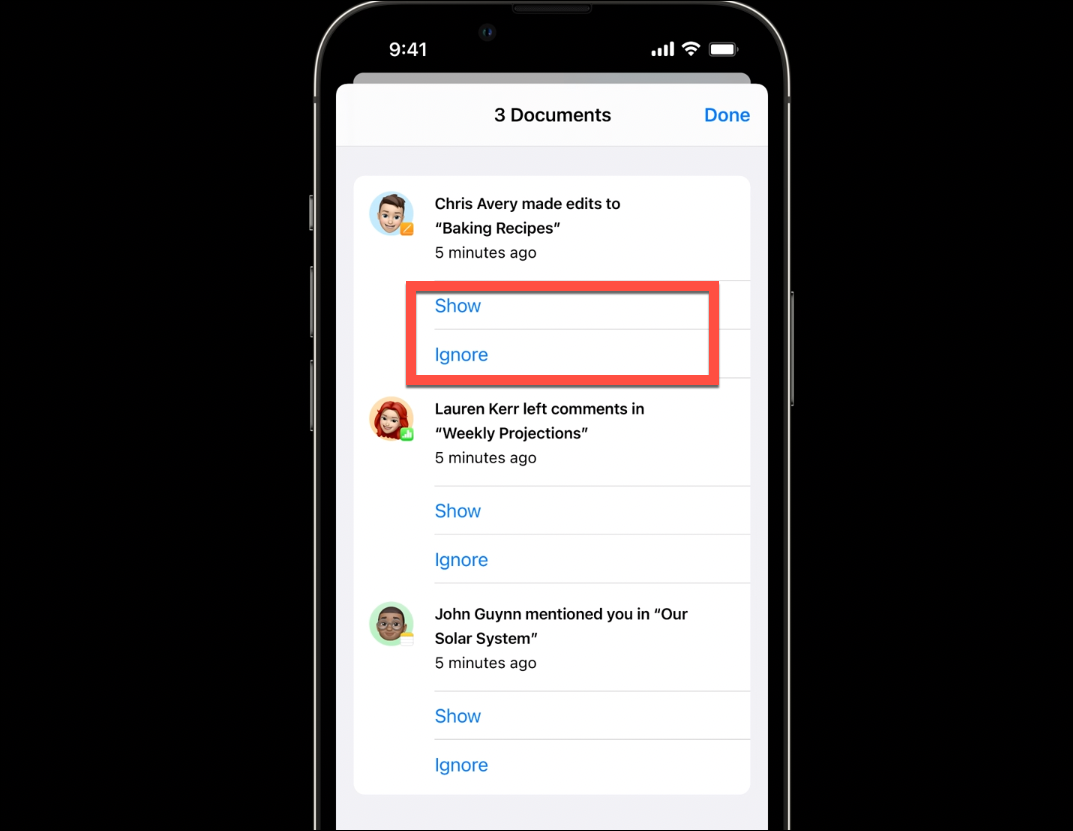 If you’re collaborating on multiple projects with the same group of people and there are multiple updates across those projects, you won’t see a horde of banners in the Messages app obscuring the entire conversation. That would be too overwhelming and frankly, a bad design choice. Instead, you’ll see one consolidated update along the lines of “[N People] made updates to [N] Documents”. Tap ‘View’ to see the complete list of updates.