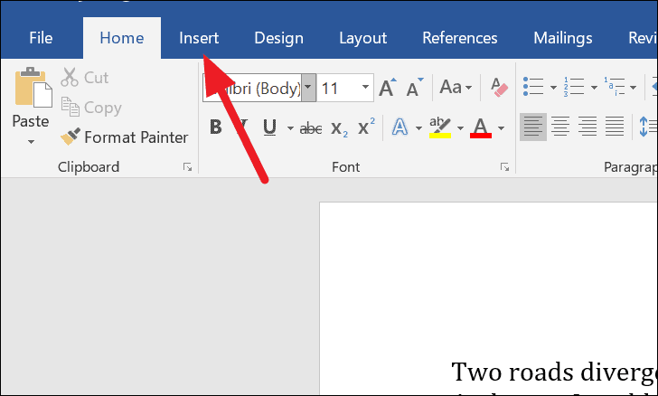 Step 1: Open the Word document where you want to combine the others. Click on the Insert tab located in the ribbon at the top of the window.