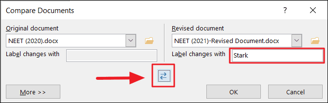 Tip: If you need to swap the original and revised documents, click the double-arrow icon between the fields.