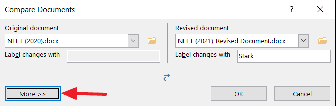 Step 7: For additional comparison settings, click the More >> button at the bottom left corner. This step is optional; you may proceed by clicking OK if you prefer default settings.