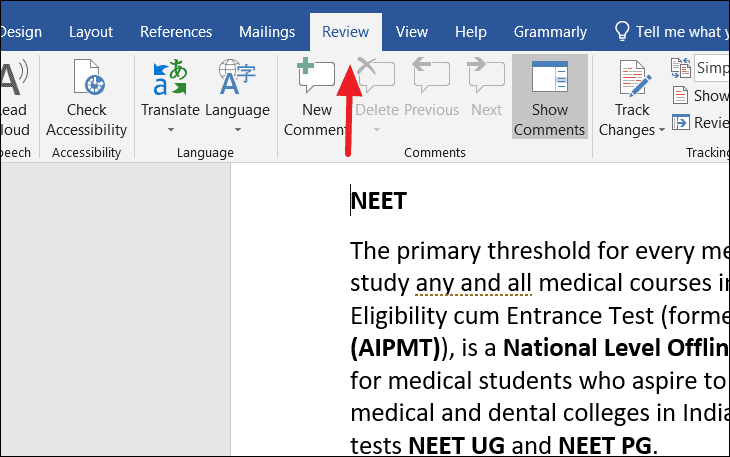 Step 1: Open Microsoft Word and open any document—or a blank one—to begin the comparison process. Navigate to the Review tab located on the Ribbon.