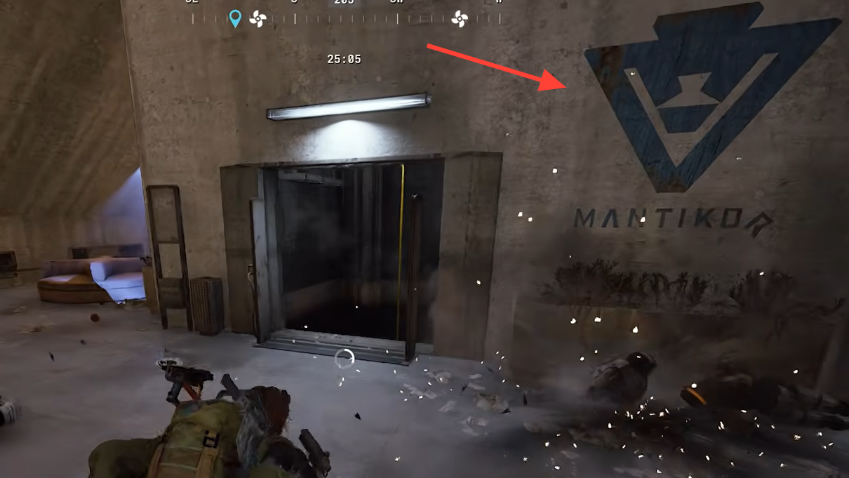 The underground facility sits beneath the Reinforced Reception point of interest, roughly in the center of the Blue Gate map between the Village and the Headhouse. Open your map, find Reinforced Reception, and head to the building on the north side. Unlock the door and look for an open elevator shaft with a zipline — ride it straight down into the basement. A large Mantikor logo on the lobby wall confirms you're in the right place.