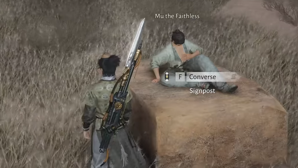 Step 1: After speaking with Mu the Heartless at Karez, head west toward Jade Gate Pass and continue to the western side of Horsehelm Village. Look for an area with dried-up wells to find Mu the Shameless.