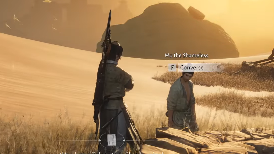 The quest begins at Karez, a settlement north of Jade Gate Pass in the Hexi region. Travel southwest from Karez until you spot Mu the Heartless lying on the sand. Interact with him to trigger the Wandering Tale. There are no prerequisite quests or level gates — you just need access to the Hexi map.