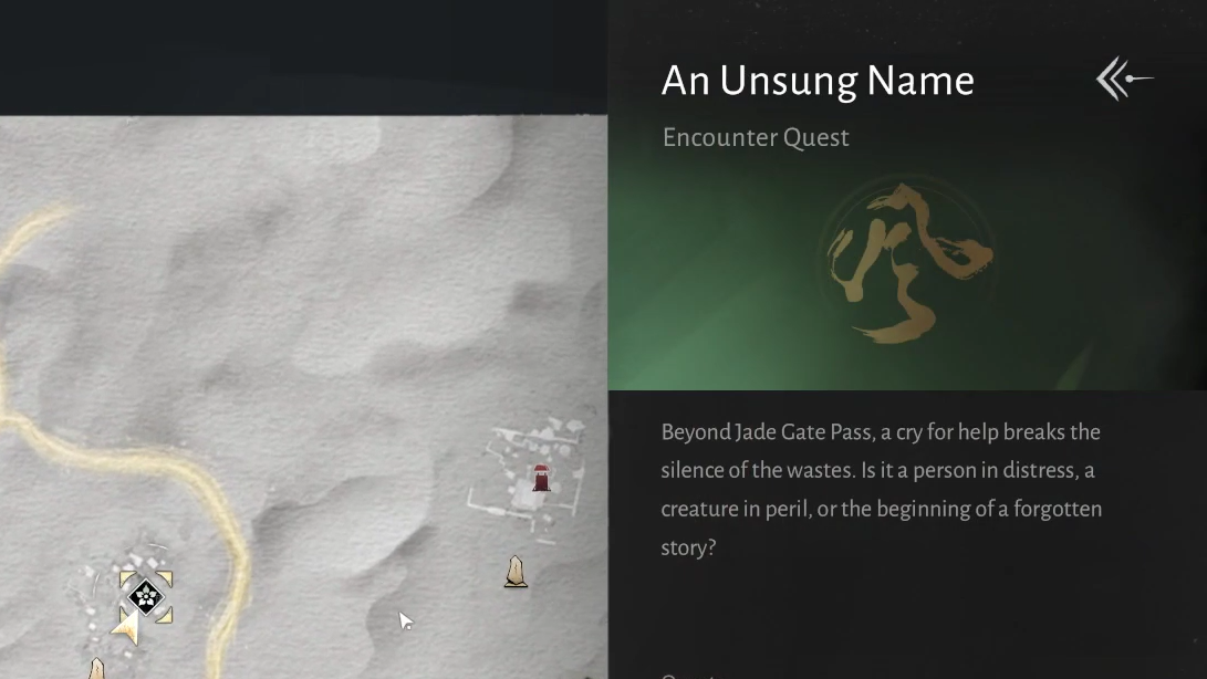 An Unsung Name is one of several new Encounter quests added to Jade Gate Pass in Version 1.4. If you're working through the Hexi side content, nearby Encounters like Land of Gold, Mysterious IOU, and The Last Pilgrim follow a similar short-quest structure and can be knocked out in the same play session.