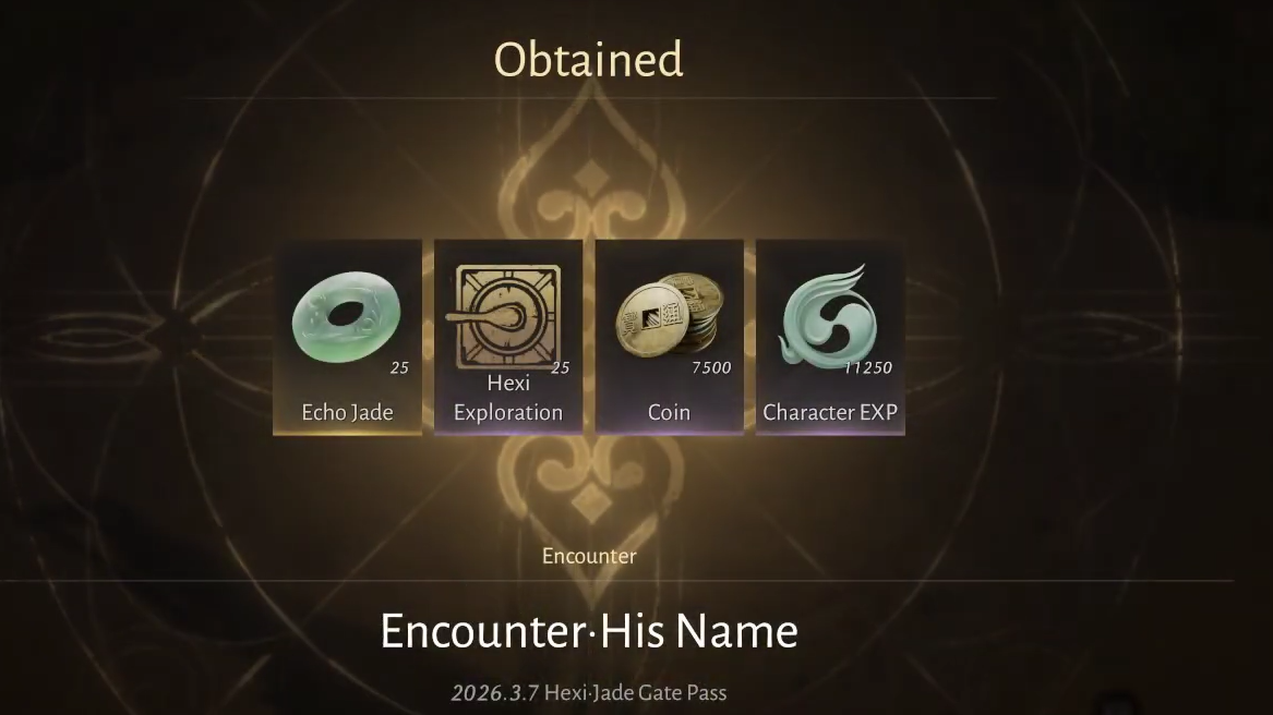 These totals include everything earned during the quest steps and upon completion. The Hexi Exploration points count toward your Jade Gate Pass 100% exploration progress, so finishing An Unsung Name is worth doing even if the other rewards feel modest.