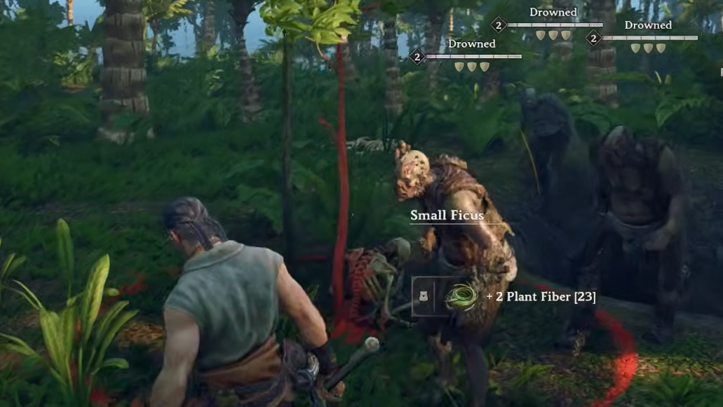 Opening the chest causes the four skeletons to reanimate as Drowned — level 2 melee enemies. Each one is individually weak, but fighting all four simultaneously is genuinely difficult this early in the game, especially if you haven't picked up decent gear yet. The Drowned primarily attack in melee range, though they also throw rocks at a distance.